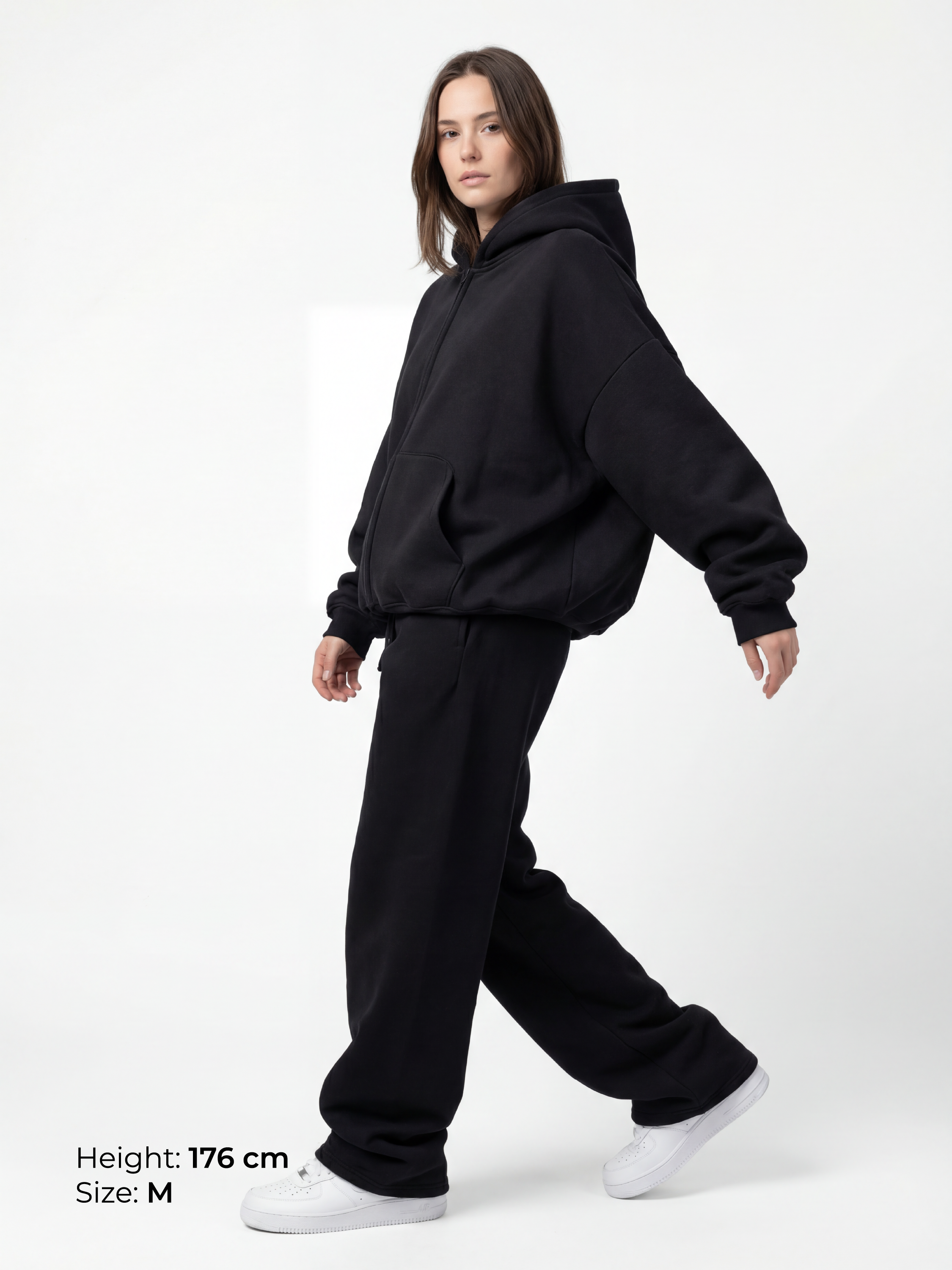 BAGGY ZIP HOODIE - BLACK