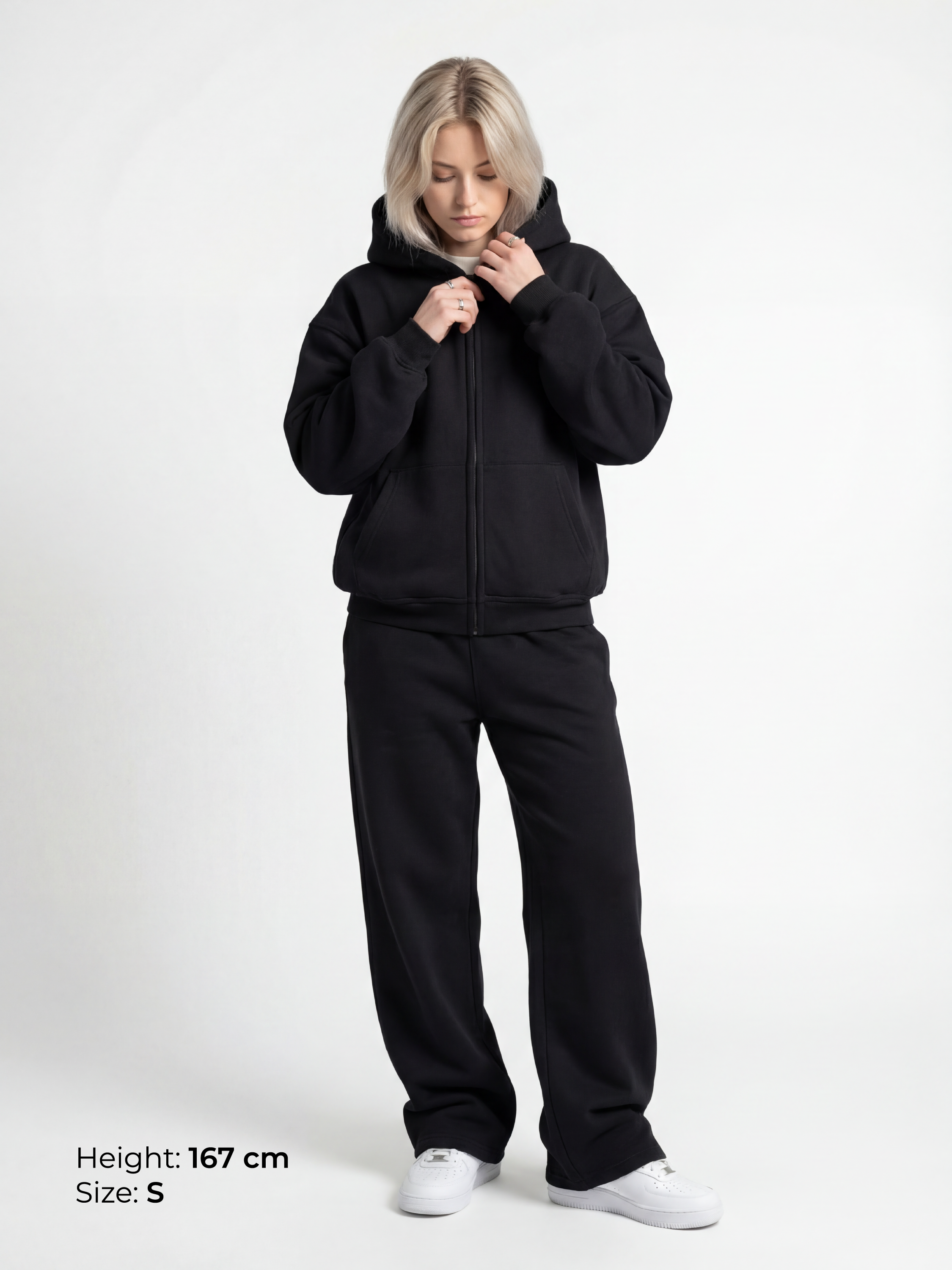 Model is 165cm tall and wears size S.